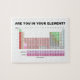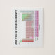 Sind Sie in Ihrem Element? Fragen Sie sich und andere diese Schlüsselfrage mit einer Dosis von Chemiehaltung mit diesem Puzzlespiel, welches die periodische Tabelle der Elemente, zusammen mit der Frage "kennzeichnet, sind Sie in Ihrem Element?" Lassen Sie andere ein Doppeltnehmen mit pädagogischer, wissenschaftlicher Haltung heute tun! Vervollkommnen Sie Puzzlespiel für Chemiemajoren, Chemielehrer, Chemiker, Wissenschaftler und jedermann, der auskennt in, wie Grundlage es, in irgendjemandes Element zu sein ist!