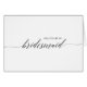 Diese eleganten modernen gefalteten Mitteilungskarten sind für Ihre Brautjungfern perfekt. Schreiben Sie spezielles etwas und stellen Sie das perfekte Andenken her! Entwurfsspitze: Wenn Sie den Text dann ändern, bitte benutzen Hauptstadtsbuchstaben, um den gleichen "Blick" zu behalten. Verbessern Sie das Schnelldruckerpapier, um es sogar extravagant zu machen! Treten Sie mit uns bitte bei beachdivasdesign@gmail.com für alle mögliche Fragen in Verbindung