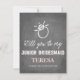 Fragen Sie Ihre Brautjungfer mit einer schönen modernen Karte. Diese Brautjungfern-Antragkarte kennzeichnet mutige Typografie alle auf einem modischen Tafelhintergrund. Machen Sie es einfach, damit sie ja mit dieser schönen Karte sagen.