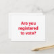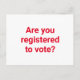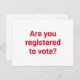 Sind Sie zur Wahl registriert? politische Wahl, freiwillige Postkarte, um die Wähler registrieren zu helfen. Minimalistischer schlichter eleganter Stil. Vollständig anpassbarer roter Text auf weißem bearbeitbarem Farbhintergrund.