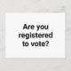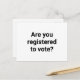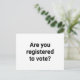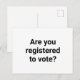 Sind Sie zur Wahl registriert? politische Wahl, freiwillige Postkarte, um die Wähler registrieren zu helfen. Minimalistischer schlichter eleganter Stil. Vollständig anpassbarer schwarzer Text auf weißem bearbeitbarem Farbhintergrund.