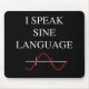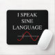 Ein lustiges Textdesign mit einem kleinen Wortspiel für Mathematik-Nerd.. dieses hier liest 'I Speak Sine Language' über einer roten Sinuswelle auf einfachen Graphen-Linien.
