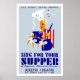 Aus Zazzles umfangreicher Sammlung von Arbeitsprojektmanagement (WPA) und Kriegsplakaten - einer phantastischen Sammlung von ikonischen Bildern, die zur Förderung von Kunst, öffentlichem Wohlergehen und Patriotismus entwickelt wurden - zeigt dieser Gedenkposter ein Poster, das von Aida McKenzie für die Bundesstaatliche Präsentation des Theaters - Sing for Your Supper - am Adelphi Theater in New York City erstellt wurde. zeigt einen Koch mit zwei Tänzern, erstellt im Jahr 1939.