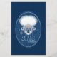 Sing vor Freude, wenn die hohen Noten des Lobess. Elegante Frau mit leuchtend weißem Haar auf dunkelblauem Hintergrund und Blume.