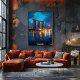 Tauchen Sie ein in die Wunder Singapurs bei Sonnenuntergang mit diesem schönen Stadtbild. Die blühenden Lichter der Marina Bay Sands, die auf dem ruhigen Wasser reflektiert werden, werden mit kräftigen Pinselstrichen eingefangen, die perfekt dazu geeignet sind, Ihrem Zuhause ein Stück exotischer Eleganz hinzuzufügen. Dieses Kunstwerk ist eine Ode an Singapurs Energie, Fortschritt und Schönheit.