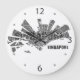 Singapur, City-Staat in Südostasien. Stadtplan in einfarbigem Stil auf einer weißen Wanduhr. Singapurs städtische Gegend als Set in der Landschaft mit einer abstrakten Kontur, die das Stadtzentrum betont. Das Straßennetz der Stadt enthüllt den Stadtliebhabern und Besuchern Aspekte der Stadtplanung. | HemdUrbanisierung