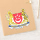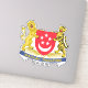 Patriotischer Aufkleber mit der Darstellung der Singapur-Wappendecke in den gelben, roten, weißen, blauen Farben. Unter dem Wappen ist die Inschrift Singapore gemacht in schönen "Aceserif" Schriftart und die schwarze Farbe. Die Inschrift ist am unteren Ende mit dem Wappen infiziert, kann aber frei verschoben oder sogar gelöscht werden, wenn Sie ein wenig anderes Design wünschen. Singapur-Wappen-Aufkleber ist ein fantastisches Geschenk für jeden Singapurer, der stolz auf sein Erbe ist. Die National Coat of Arms von Singapur ist das heraldische Symbol für die südostasiatische Inselnation Singapurs. Es wurde 1959 adoptiert, als Singapur innerhalb des Britischen Reiches selbstregiert wurde. Der Ausschuss, der ihn ins Leben gerufen hatte, unter der Leitung des damaligen Vizepremierministers Toh Chin Chye, war auch für die Nationalflagge und die Nationalhymne Singapurs verantwortlich. Im Mittelpunkt des Emblems steht ein rotes Schild mit einem weißen Halbmond (ein neuer Mond, der eine aufstrebende junge Nation darstellt) und fünf weißen Sternen (die verschiedene nationale Ideale einschließlich Multikulturalismus repräsentieren), unterstützt von einem Löwen und einem Tiger (der Singapur bzw. Malaysia repräsentiert); darunter befindet sich ein blaues Band, das mit Majulah Singapur in Gold, Malay für "Onward Singapore" eingeschrieben ist. Quelle: Wikipedia, https://en.wikipedia.org/wiki/Coat_of_arms_of_Singapore