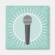 Ein skurriles, niedliches Sängerdesign mit einem Mikrofon auf lustig türkisfarbenem Aqua-Spiralhintergrund. Für Kinder und Erwachsene.