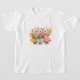 Three singing cats in colorful dresses holding pretty bouquets of wildflowers.