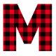 Die anderen Buchstaben des Alphabets sind im Design verborgen. Wenn Sie etwas Anderes als den Buchstaben M benötigen, ist es verfügbar, wenn Sie dieses Design anpassen. Das Muster ist ein hellroter und schwarzer Büffel kariert oder Gingham Karo. Der Schriftart für Blöcke macht fett formatierte Buchstaben.