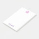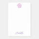 Dieses klebrige Notizblock zeigt ein fett digitales Bild eines Single Lavatera Blume Blüte am oberen Seitenrand und einen lila personalisierten Namen am unteren Rand in einem Schriftart mit Skripten.