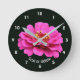 Colorful single pink zinnia flower wall clock. Flower photography by Susan. This image is available on many cards and products in my main store Smilin' Eyes Treasures. Visit my Profile page to find links to all of my stores.