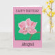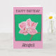 Say Happy Birthday mit dieser hübschen Karte mit einem originellen zeichn einer Single rosa orchid Blume auf einem grünen und rosa Hintergrund. Es ist einfach und hübsch. Sie können den Gruß und Namen auf der Vorderseite personalisieren und Ihre eigenen Worte hineinfügen. Das Kunstwerk ist originell und nur von The Art of Being Beth erhältlich.