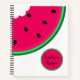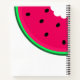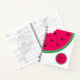 Ein Rezeptorbinder, der mit einem Single-Bild eines hellen, saftigen, roten Wassermelone-Schnittes mit einem Biss aus dem Hintergrund verziert ist. Das Bild deckt die Vorderseite, die Rückseite und den Rücken des Bindemittels ab. Sowohl auf der Wirbelsäule als auch auf der Vorderseite ist ein farbiger Kreis, den Sie mit Ihrem Namen personalisieren können. Das Design ist einfach und modern.
