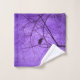 Dieses Waschlappen hat die Silhouette einer schwarzen Single-Krähe, die in den Zweigen eines kargen schwarzen Baumes an einem tiefen lila Himmel sitzt.