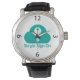 Uhr, Klassische Damenuhr mit schwarzen Lederarmband
