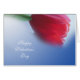 Single rote Tulpe Blume im blauen Hintergrund. Geschenke für Valentinstag, Liebe, Hochzeit, etc.