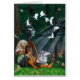 Ein elven Barde sitzt in einem tiefgrünen Wald und spielt seine Harfe. Als spielt er, sein Anmerkungsfanglicht und Drehung in glänzende weiße Vögel. Sein Wolf sitzt durch seine Seite und passt die Vögel auf, nehmen Flug. Die Musik hat auch einen Wirt der Waldgeschöpfe erfasst, die herum zusammengetreten sind, hingerissen. Dieses Bild wurde auf einer Abdeckung für Drache-Zeitschrift verwendet. Die Nichterfüllungsdruckgröße von Zoll 17x22 ist die Größe der ursprünglichen Malerei.