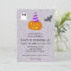 Dieser ist für jeden gedacht, der einen Geburtstag vor oder zu Halloween hat, und kann trotz einiger niedlicher Elemente für alle Altersgruppen genutzt werden. Im Mittelpunkt steht dabei die Jack-o-Laterne mit einem Party-Hut. Diese Karte enthält anpassbare Elemente, die mit der blauen Schaltfläche "Dieses Design anpassen" geändert werden können. Sie können den Namen und das Alter der Person, das Datum und die Uhrzeit des Party, den Ort des Party und die UAWG ändern.