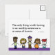 Postcard mit dem Doodle lächelnder Leute und dem Text: "Das einzige, was es wert ist, in einer irdischen Existenz zu sein, ist ein Gefühl von Spaß." (Zitat von Lincoln Steffens) Doodle aus dem Buch Dare To Be Happy von bethaschmidt.com.