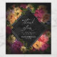 Die hellen, warmen Farben der Blumen, von Korallen und Rose bis Rosa und Gelb, vereinen sich mit einem prächtigen, obsidianischen Hintergrund und geben den Stücken in dieser eleganten Hochzeitssuite ein dunkles, stimmungsvolles Ambiente. Dieses Hochzeitsweinetikett bietet eine Fülle von Blume rund um einen diamantenförmigen Rahmen, um Ihre Namen, das Hochzeitsdatum und eine persönliche Nachricht zu halten. Suchen Sie ID829, um die komplette Auflistung zu sehen.