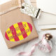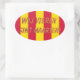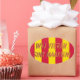 Geel met rood gestreepte achtergrond en oranje tekst. Pas de tekst naar wens aan.