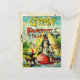 Farbenfrohe Vintage Illustration eines wunderschönen Sinti und Roma-Wahrsagers. Sie sitzt vor einem Zelt und hält einige Karten in ihrer rechten Hand. Eine Eule fliegt in der Nähe.