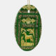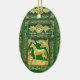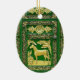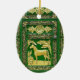 Foto eines traditionellen Sinti und Roma-Wohnwagens mit einem goldenen Pferd auf grünem, bemaltetem Hintergrund, fotografiert auf der Pferdemesse Appleby in Cumbria, England, wo sich jedes Jahr die Sinti und Roma treffen.