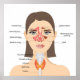Sinusitis, weibliches Gesicht mit Entzündung der Schleimhaut der paranasalen und frontalen Nebenhöhlen Vorderansicht der Schilddrüse und der Trachea auf weißem Hintergrund Anatomie der menschlichen Organe