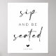 Set a welcoming tone with this Sip and Be Seated sign, perfect for inviting guests to enjoy a drink and find their table at weddings, bridal showers, or special celebrations. Stylish and easy to personalize to match your event decor. Customizable colors.