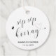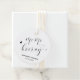 Typografisches Brautparty bevorzugt Tags mit der Meldung "Sip Sip Hooray" in schwarzer Kalligrafie mit einem Herz auf der Seite, sowie das "i's" und Ihren Namen, Event und Datum unten, über einen weißen Hintergrund. Die Rückseite ist schwarz. Die Hintergrundfarben können in eine beliebige Farbe geändert werden. Die schlichte und minimalistische Anordnung und die viel offene Fläche verleihen diesem Design ein modernes Ambiente und die kalligraphische Schrift und das Herz geben ihm eine romantische Drehung. Diese eleganten und schicken Tags verleihen Ihren Favoriten eine persönliche Touch.