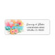 Die tropischen Rücksendeadressen-Aufkleber sind mit einem Sonnenuntergang in Aquarelltönen, Cocktails, Hibiskus-Blume und Palmen-Blätter ausgestattet.