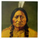 Diese dekorativen Fliesen sind mit dem legendären Hunkpapa Lakota Sioux Native Amerikanische Ureinwohner Chef, Schamane, heiliger Mann und Krieger, Sitting Bull, 1831-1890. Dies ist eine farbige Version des originalen Fotos von David Francis Barry um 1885. Das original Schwarz-Weiß-Foto ist in der ständigen Sammlung der Kongressbibliothek erhalten.