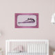 Das ist ein gestylter zeichn einer Balletttänzerin, die sich über ihre Beine streckt. Es hat eine Rose rosa Rand mit schwarzen Wirbel.