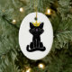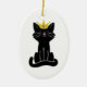 Sitzende schwarze Katze mit Goldkrone Keramikornament