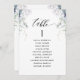 Helfen Sie Ihren Gästen mit diesen eleganten, modernen Sitzplakaten mit Gästebamen ihren Tisch zu finden. Design mit exquisiter Vegetation und weißen und blauen Blumendetails. Doppelseitige Karten, damit die Gäste von beiden Seiten, vorn oder hinten nach ihren Namen schauen können, falls sie dies wünschen, dann in einem hängenden Display. Klare Platzverhältnisse, die Ihnen die Möglichkeit geben, Clips oder Lochausschnitte für hängende Displays zu verwenden oder Tischhalter/Rahmen zu verwenden. Moderne handgeschriebene Kalligrafieelemente. Teil unserer "Elegant Bliss" Kollektion mit einer Vielzahl von Produkten, die die Koordination der Tischnummern, Menüs und Veranstaltungsschilder ermöglichen.