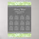 Elegante und zeitgenössische, anpassbare zwölf Tisch Sitzplakette für Hochzeiten in modernen, hellen Apfelgrün, Grau und Weiß klassische Blumendampf Vintage Muster. Passen Sie Ihren Namen an, um eine einzigartige Sitzkarte für Ihre Hochzeit zu erstellen.