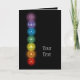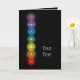 Eine grafische Gestaltung der sieben Chakren auf einer Grußkarte. Die Karte verfügt über Vorlagen für Ihre Personalisierung, und die Hintergrundfarbe ist anpassbar.