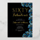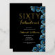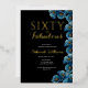 Minimal Sixty and Fabulous Gold Foil black and blue modern Floral 60th birthday invitation that you can personalize and send out for your sixtieth birthday party celebration. The words "Sixty and Fabulous" are set using trending font.
