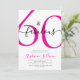 Sixty and Fabulous script, a minimal pink-and-black modern 60th birthday invitation that you can personalize and send out for your sixtieth birthday party. The words "60 and Fabulous" are set in a popular script font. The text colors can be changed using the edit menu.