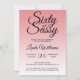 Sixty and Sassy Strawberry Ice 60th Birthday Invitation card featuring dramatic black script typography over a soft strawberry ice ombré background that fades from light pink into a pale blush tone. The playful headline sets a confident yet graceful mood, while the clean layout clearly highlights the honoree’s name and event details. Ideal for a 60th birthday dinner, cocktail party, or elegant milestone celebration with a light, modern color palette. Easily personalize with your details.