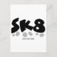 SK8 ist die Abkürzung für Skate und diese wird durch Cartoon-Räder unterstrichen.