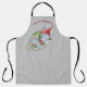Whimsical Holiday themed Schürze zeigt Aquarellbilder eines Gnomen-Paares auf einem sich schnell bewegenden Schlitten. Grauer Hintergrund mit anpassbarem Text im modernen dunkelroten Schriftart.