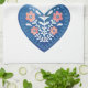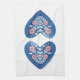 Skandinavisches Folk Art blaues Herz auf einem Küchentuch.