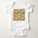 Dieser Babybodyanzug hat ein skandinavisches Design von Blume und Blätter in verschiedenen Orange- und aquamarin-Tönen.
