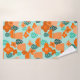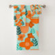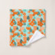 Dieses Handtuchhandtuch-Set hat ein skandinavisches Design von Blume und Blätter in verschiedenen Farbtönen von orange und aquamarin.
