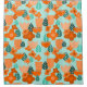 Dieser Duschvorhang hat ein skandinavisches Design von Blume und Blätter in verschiedenen Orangetönen und aquamarin.