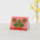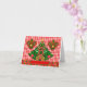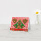 Eine volkstümliche GOD JUL Postkarte im skandinavischen Weihnachtsstil mit dekorativen skandinavischen Malerei. Illustriert von Anni Arts im Stil traditioneller skandinischer Volksbilder. Folkybaum, gewebte Herzen und Rand in traditionellen Farben. Sehen Sie auch die anderen skandinavischen Weihnachtskarten und -produkte mit der Koordination von Rentieren, Elche/Elche, skandinavischen Weihnachtsziegen/-julbock und Dala Volkspferdarstellungen. Passen Sie das Innere an.