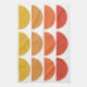 Ein nordisches, modernes Kunstmuster aus der Mitte des Jahrhunderts mit Schalen in Rot, Orange und Gelb.