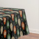 Festliche Tischdecke mit skandinavischem Farbschema aus der Mitte des Jahrhunderts mit Kiefernkonen-Ornamenten mit volkstümlichen Schablonenschmuck auf schwarzem Hintergrund